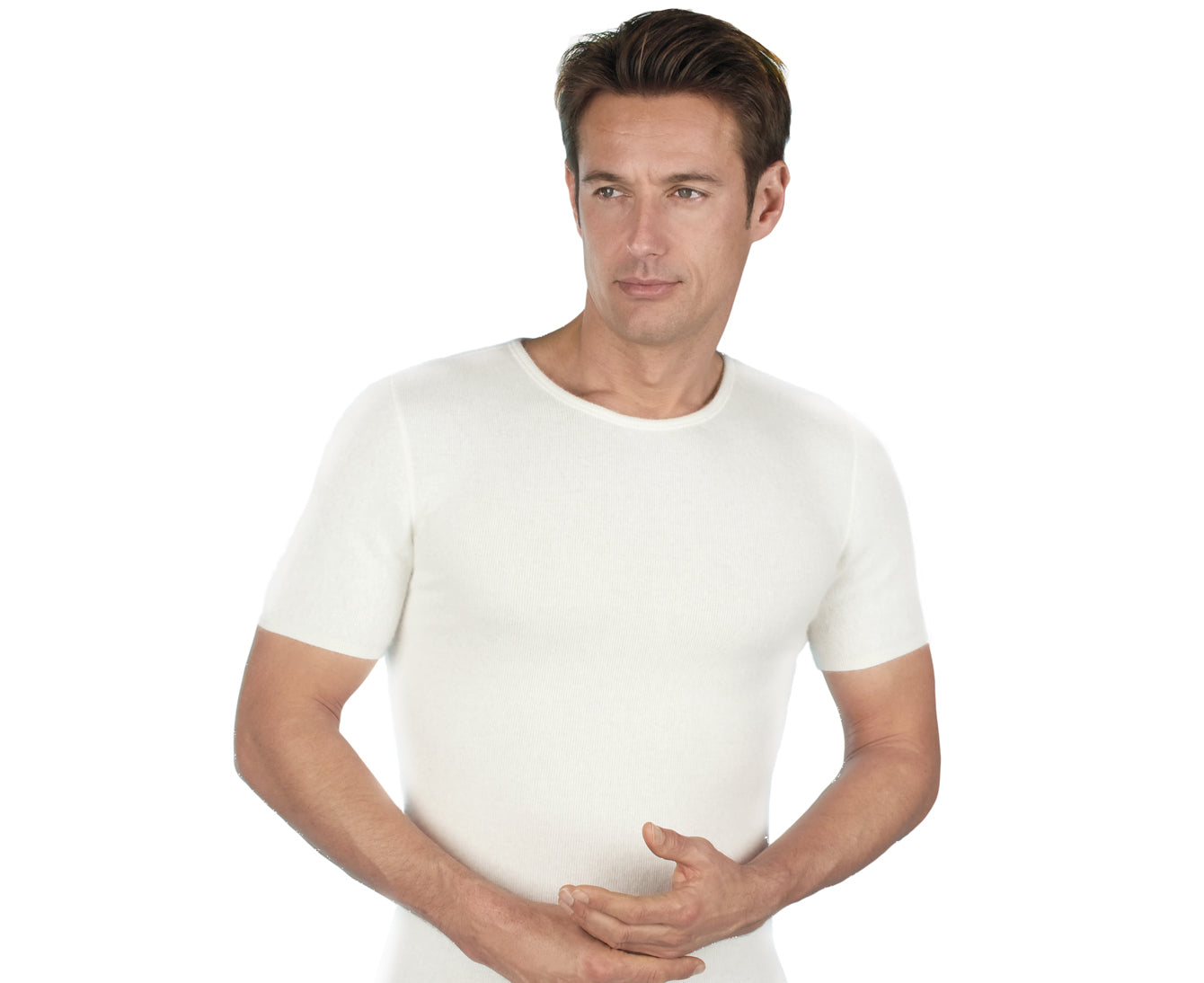 Herren-Halbarmshirt aus 100 % Angora – natürliche Wärme für empfindliche Körperregionen.